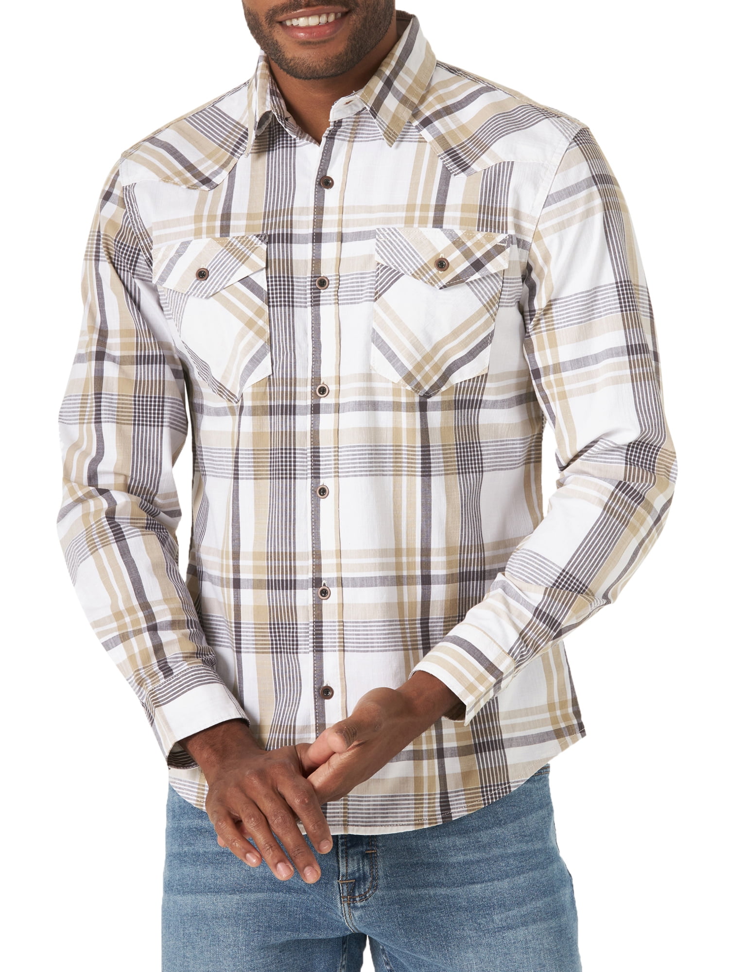 Wrangler Men S Slim Fit Long Sleeve Woven Shirt Walmart Com